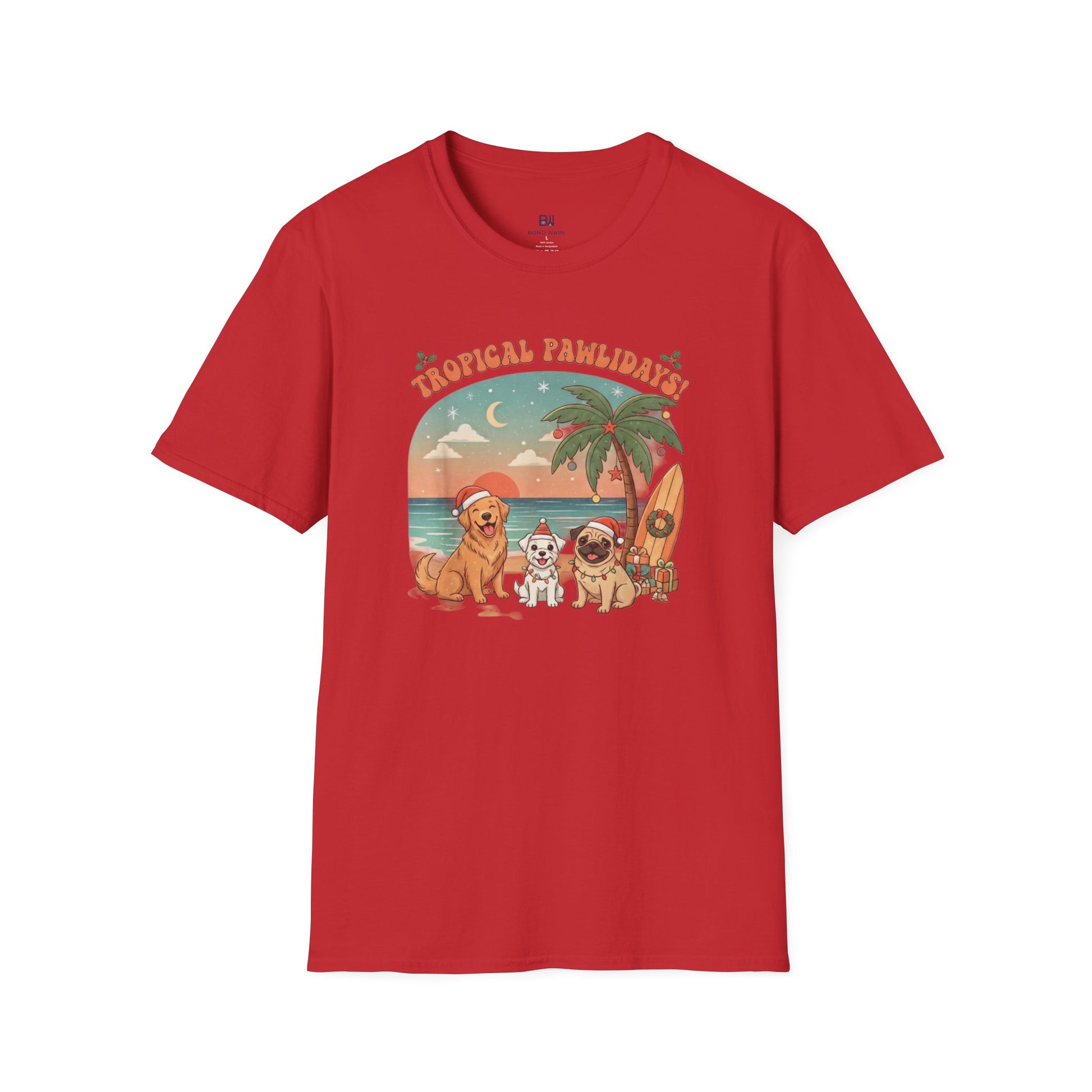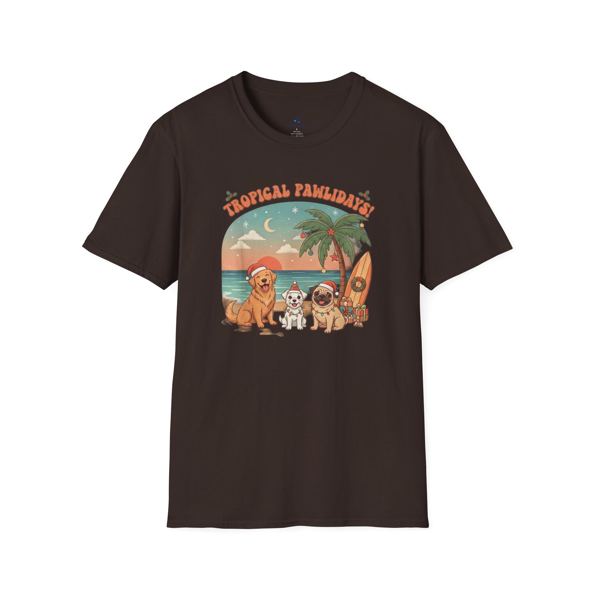 Cute Dogs on Beach Tropical Christmas Holiday T-Shirt